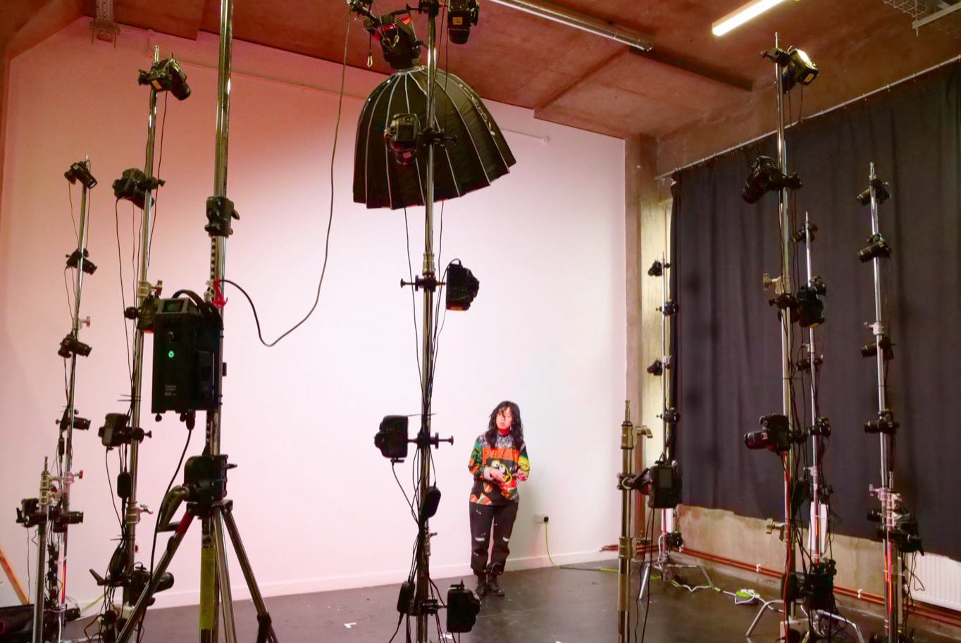 Edmund uses a self-built rig of 44 consumer-level Canon DSLR cameras, which can be disassembled and reassembled in any studio location and triggered simultaneously using a remote control.
